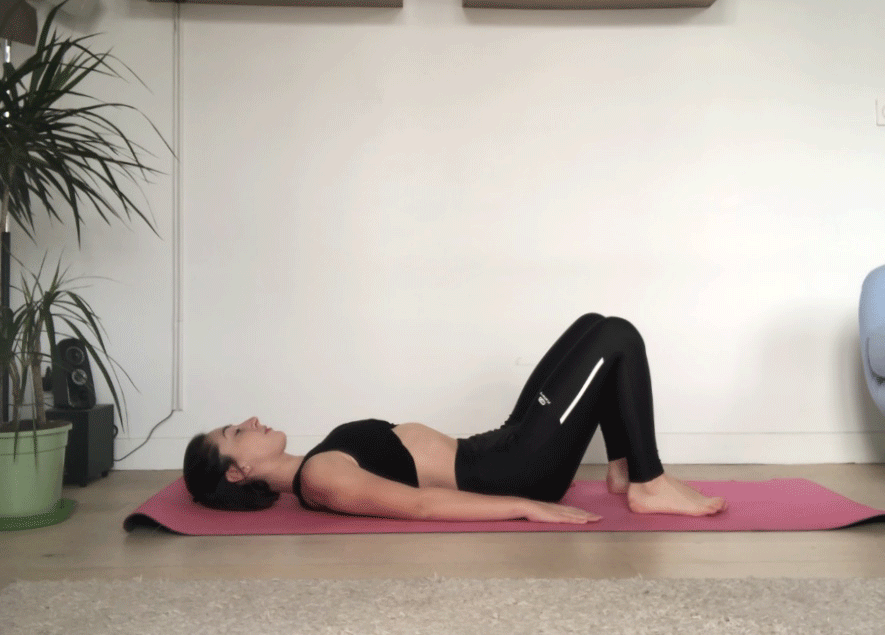 Comment faire ? Allongez-vous sur le dos, avec les genoux fléchis et les pieds à plat sur le sol, écartés à la largeur des épaules. Allongez vos bras le long de votre corps. Serrez les fessiers, puis levez votre bassin en expirant. Il devrait arriver dans l’alignement de vos genoux et de vos épaules, puis baissez en inspirant jusqu’à ce qu’il touche le sol. Répétez le mouvement pendant 30 à 45 secondes