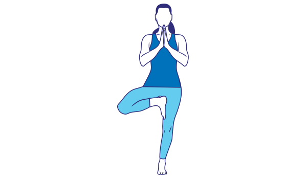 Mettez-vous debout, les pieds écartés à la largeur des hanches et les mains sur les hanches (ou une main sur le dos d’une chaise solide pour les débutants).