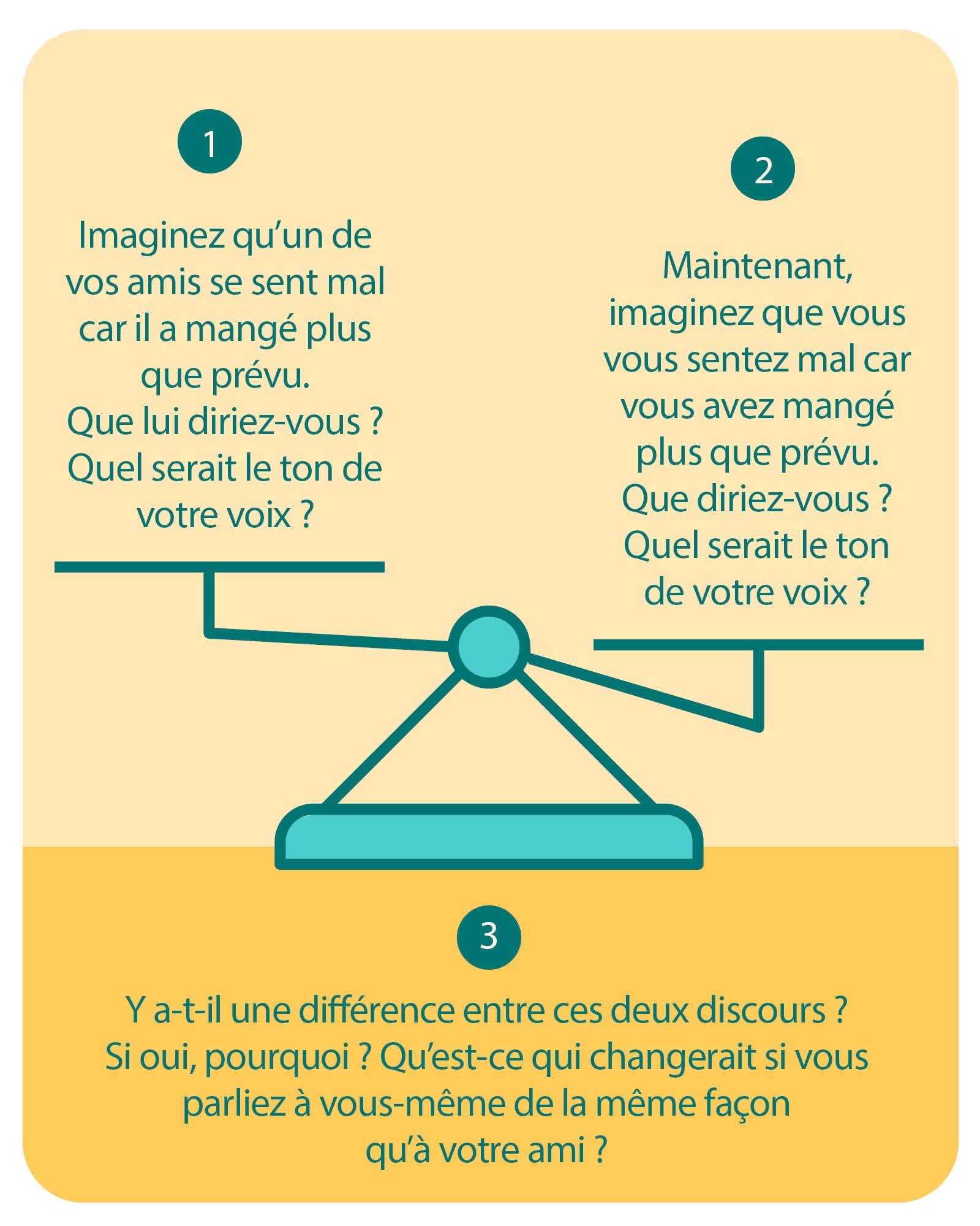 Nous avons naturellement tendance à encourager nos amis, mais à nous autocritiquer. Alors testez cette technique la prochaine fois que vous vous sentez mal, car la manière dont vous parlez à vous-même est essentielle pour avancer vers vos objectifs et les maintenir sur le long-terme.