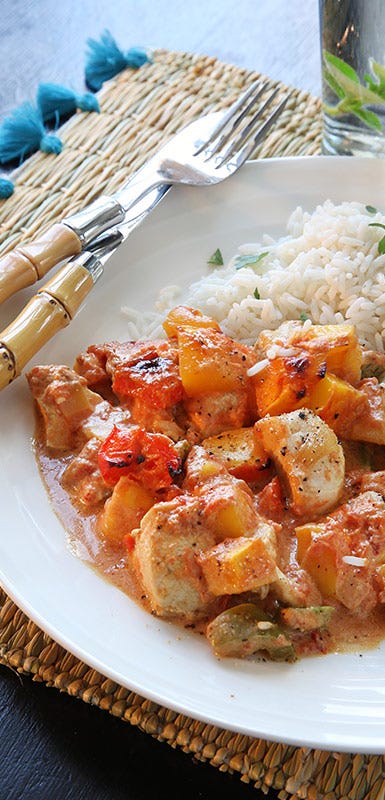 På söndagar får det gärna vara lite extra lyxigt och gott, men det behöver inte vara onyttigt för det! Testa fläskfilé i en sås av fraiche, chilisås, vitlök, rosépeppar och persilja. Servera med pressad potatis eller hasselbackspotatis.