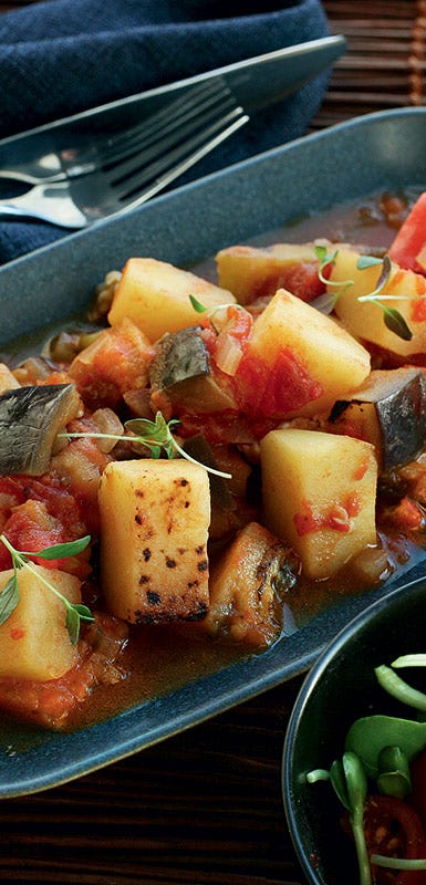 Fyll en mattermos med en värmande vegetarisk gryta med potatis! Perfekt att plocka upp ur ryggsäcken under en lång skön promenad.