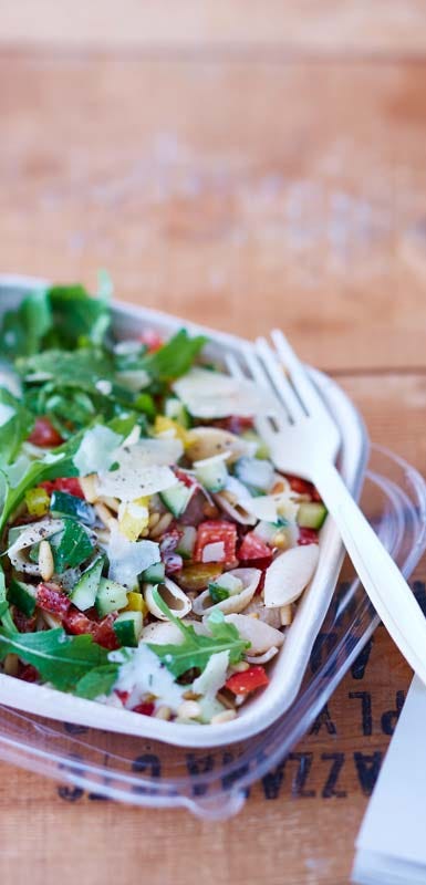 Sallad är utmärkt utflyktsmat. Det går snabbt att svänga ihop, är enkelt att äta och så gör det ju inget om de skumpar runt lite på en cykel (snarare tvärtom).