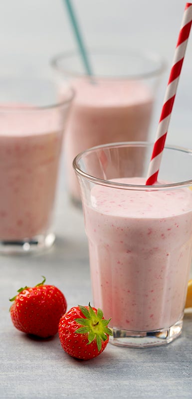 Frukost, mellanmål och som vitaminboost när det behövs. Smoothie är drycken som kan varieras helt efter tycke och smak. Mixa frukterna och grönsakerna du gillar och hitta nya favoritkombinationer. För att hålla dig mätt och nöjd ännu längre kan du istället för vanlig yoghurt använda kvarg och tillsätta grönkål eller babyspenat som en extra energikälla.