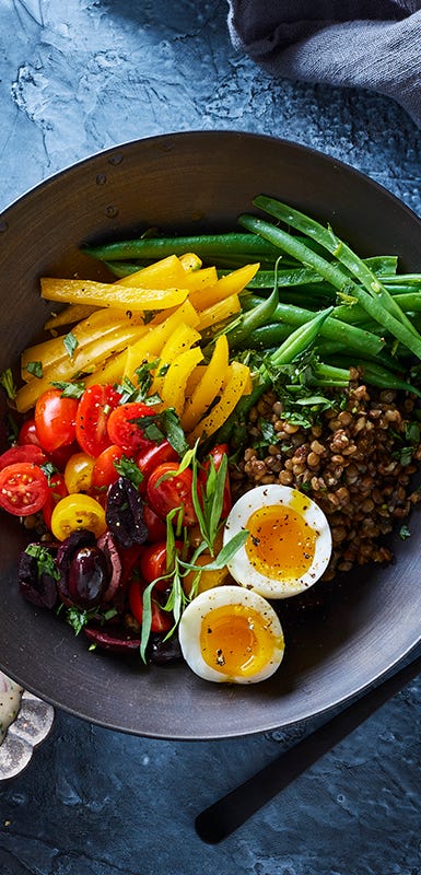 En sallad kan du snabbt slänga ihop. Har du några rester i kylskåpet så använd dem. En bit lax, korv lite pasta eller matgryn blir utmärk i en sallad! Annars är det perfekt att ha lite konserver hemma som bönor, linser eller tonfisk. Det är bara fantasin som sätter gränserna!