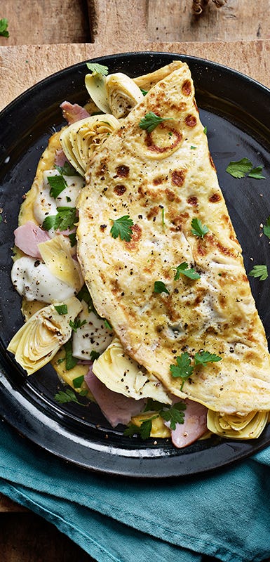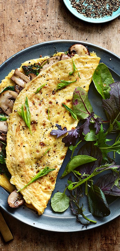 Omelett går snabbt, är mättande och passar perfekt som en lunch. Fyllningen kan varieras efter vad som finns i kylskåpet.