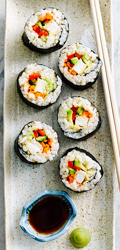 Futomaki - En så kallad sushirulle där ett noriark (torkat sjögräs) omsluter sushin och dess innehåll. Noriark är för övrigt väldigt nyttigt!