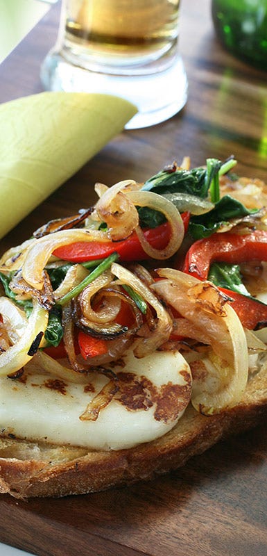 Bruschetta - en omtyckt förrätt som kan varieras i oändlighet. Här med tomat, paprika och vitlök. Chilin ger extra sting åt denna goda rätt.