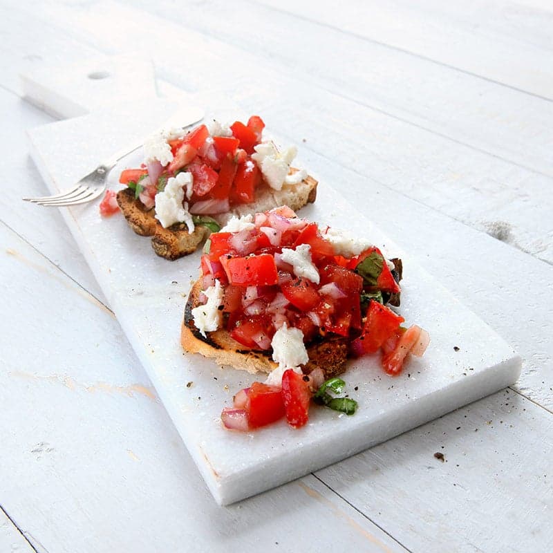 Bruschetta med en twist. Jordgubbar och mozzarella gör den här bruschettan lite mer spännande. Passar fint som en somrig förrätt.