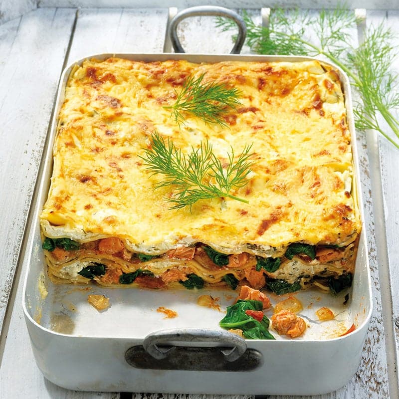 Varför inte byta den klassiska lasagnen mot denna goda lax- och spenatvarianten som går hem hos både barn och vuxna? Godast blir det att servera tillsammans med en sallad.