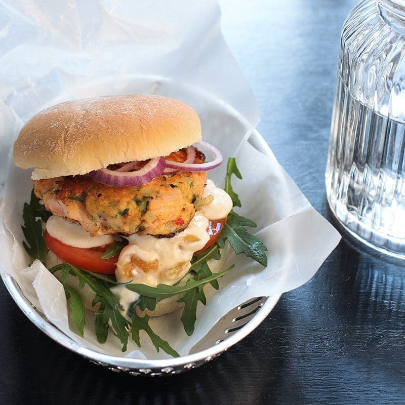 Laxburgare med mangoyoghurt
