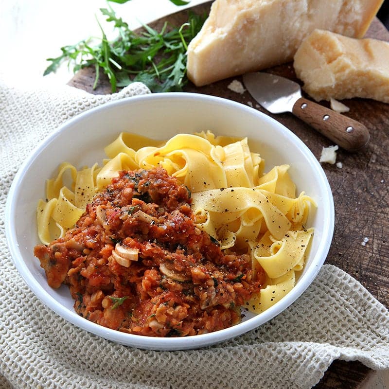 Testa en vegetarisk bolognese nästa gång andan faller på. Gott och hälsosamt för hela familjen, och miljön!