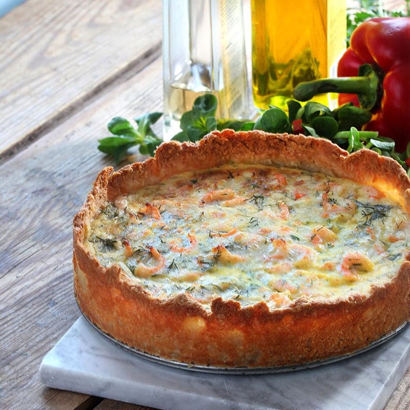 Den bästa av de bästa skulle man kunna kalla denna paj! Somliga påstår att skaldjur och ost inte passar ihop, men oj vad denna fantastiska räkpaj motbevisar dem! Lagrad ost, räkor, grädde och dill är ju en helt underbar kombination. I denna lyxpaj har vi dessutom blandat ner ost i skalet för att göra den ännu godare, givetvis gör du som du vill med detta, enkelt att byta ut till ditt vanliga pajskal.