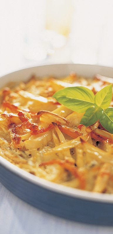 En lyxig och god förrätt med tunt hyvlade rödbetor och rädisor, en god vinägrett, ruccola och parmesan.