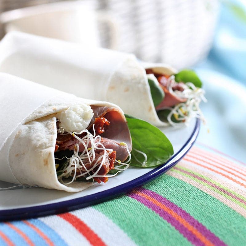 Wraps med rostbiff och soltorkade tomater