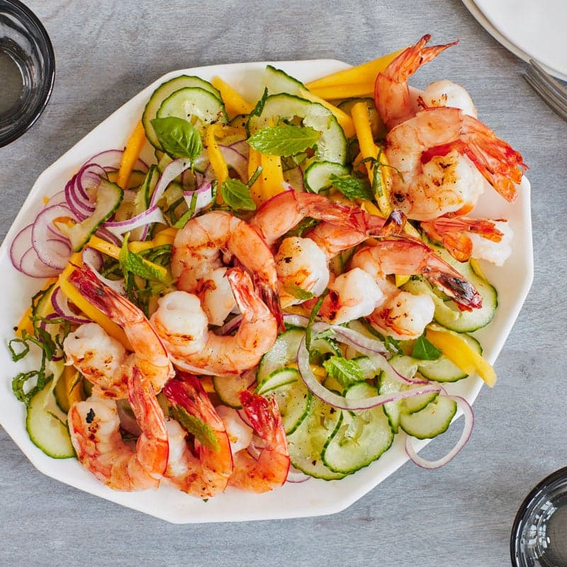 Asian Mango-Cucumber Salad with Grilled Shrimp