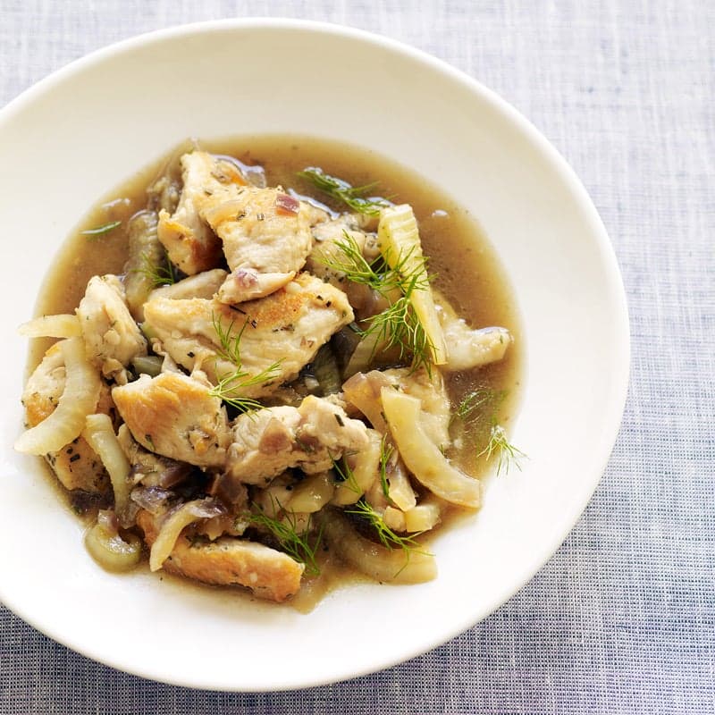 Chicken and fennel in rosemary-wine broth