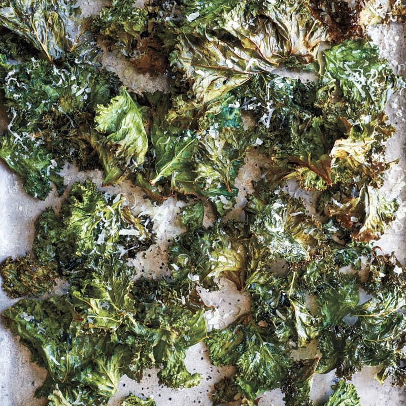 These chips are better than what you can buy and so much kinder on the wallet! Even better? They’re much easier to make at home than you may think. Crunchy, cheesy, and garlicky, they make a healthy salty snack, or you can branch out and try them crumbled over salads, soups, or casseroles. To achieve a super crispy texture, dry them well after rinsing. And don’t crowd them on one pan. Spread the leaves in a single layer between two pans so that they’ll cook evenly and won’t steam and wilt. Store them in airtight container—they’ll stay crisp up to 3 days.