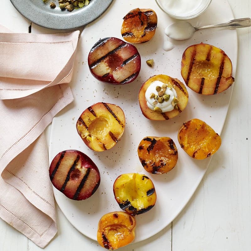 Grilled Stone Fruit with Honeyed-Yogurt & Pistachios