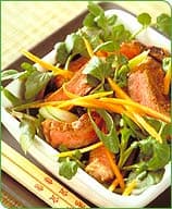 In a large bowl, toss watercress, scallions and carrot with warm marinade.