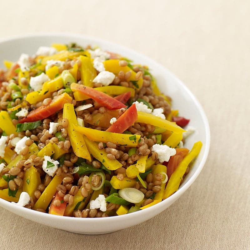 Wheat berries are a fiber-rich grain with a chewy texture and beautifully complement this colorful salad. They're delicious paired with roasted beets (we used golden and red) and creamy goat cheese; you can use feta if you prefer. We also love the simple vinaigrette, comprised of orange juice, orange marmalade, olive oil, apple cider vinegar, and a touch of salt. For added convenience, the beets and wheat berries can both be cooked several days in advance of serving this salad. Simply reheat them and toss with the remaining ingredients when you want to assemble the salad. You can also serve this salad warm, room temperature, or chilled.