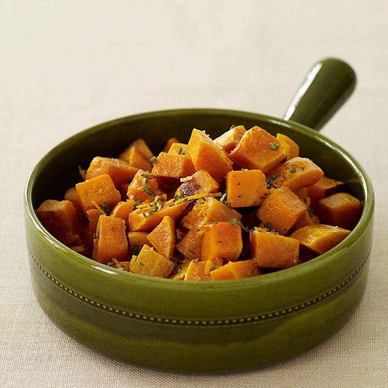 Transfer squash to a serving bowl; toss gently with sage and orange zest. Yields about 3/4 heaping cup per serving.