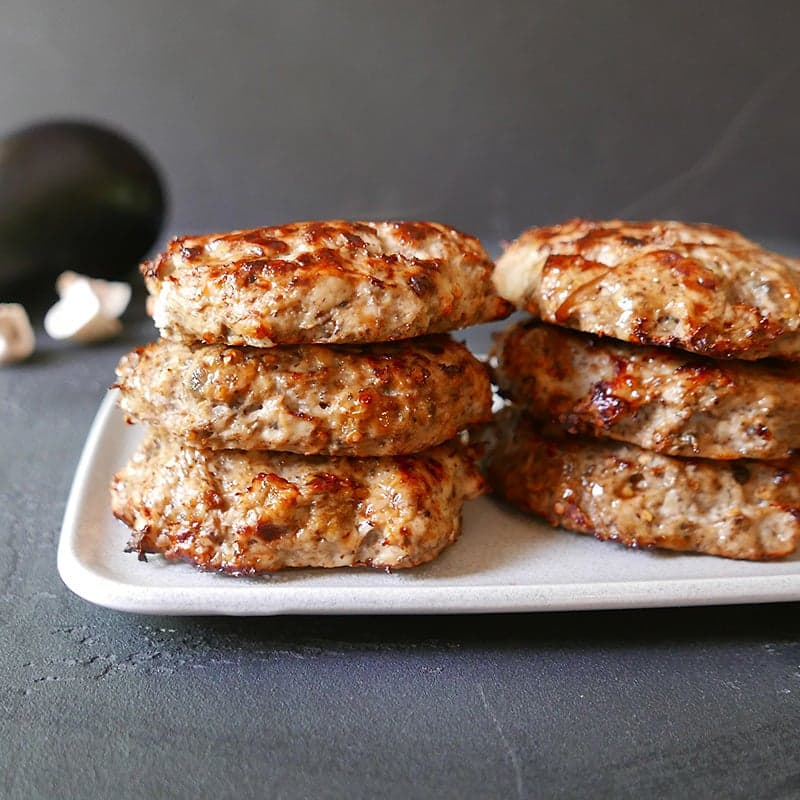 Make your life easier by investing a little time in making these freezable burger patties; they'll serve you well when you're crunched for time at lunch or dinner later on. Two key ingredients keep them moist and add deep umami richness: cooked mushrooms (basically a simplified duxelles) and pureed eggplant. Our microwave cooking method for the eggplant keeps prep easy and streamlined. Serve the patties on buns with your favorite fresh fixings, or go bunless and enjoy on or with a side salad or roasted vegetables.