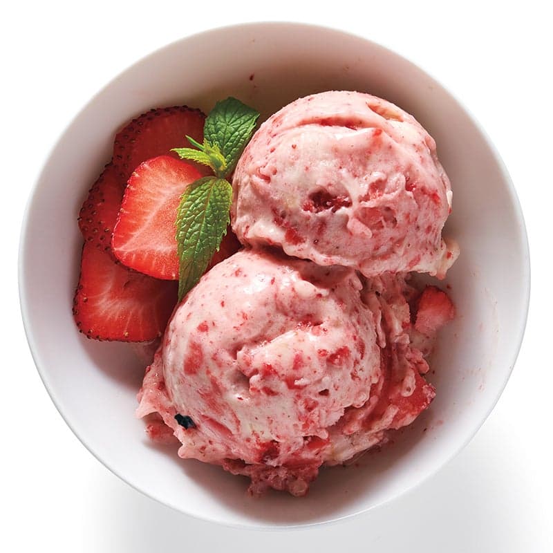 You only need three ingredients to make this creamy and refreshing dessert. Make sure to completely freeze the bananas and strawberries so that they blend to the right consistency.